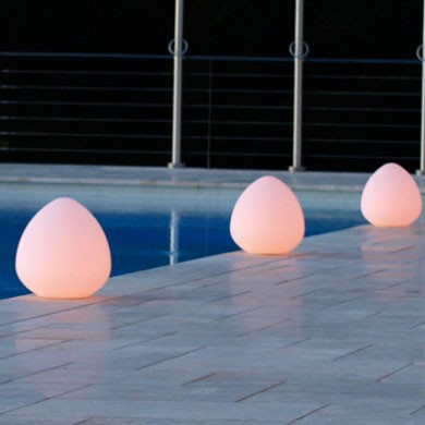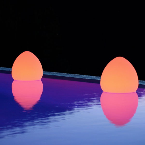 Outdoor & indoor lamp arise on the ground or float on the surface of a swimming pool (immersible to 2 meters)