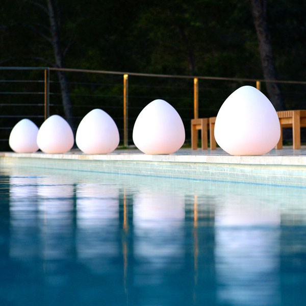 The Lamp floating Rock in Smart and Green just illuminate your outdoor floating gently on your pool or posing in a corner of your garden or your patio. Unbreakable polyurethane, this floating light or to ask is totally resistant to weather, shocks, falls and water! Immersible up to 2 metres, you can make it float to the surface of your pool without any risk of damage! Available in 2 sizes, Rock 30 cm or Rocky 55 cm, it adapts to your space! With its high led technology, it offers you a multitude of colors and moods in order to make your outdoor space warm and harmonious. Modular and ingenious, this lamp economic and ecological technology welcomes a dynamic bulb recreating 160,000 colors with LED diodes and a battery low consumption. The lamp recharges all simply by asking on its charging station while continuing to illuminate around it!