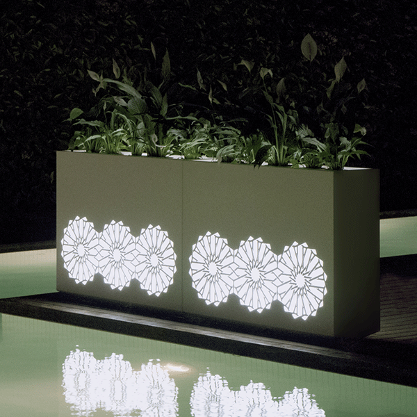 The Gardener Arabia from Fesfoc Barcelona available in two sizes (H60 and H82cm) and three finishes (stainless steel, painted galvanized steel and corten) can receive a light kit hot available in white, RGB (with remote) and warm white cold (with remote). These reasons very Arabists provide very chic and design rendering these planters that will be ideal to define your different public and private outdoor spaces.