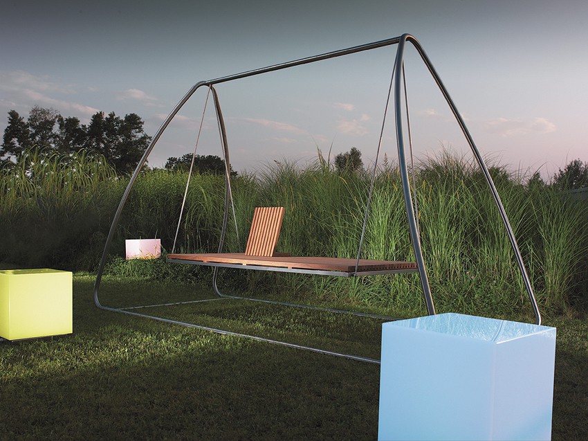 Lamp and seat outside with refined stainless steel base and plexiglass diffuser