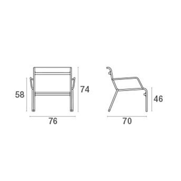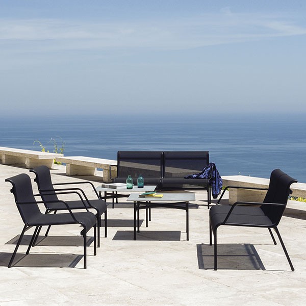Lot of 2 and Kira from Emu was designed by designer Christophe Pillet. The collection Kira is a full range made of aluminium painted tubular associated with an Emu - Tex fabric specially designed for outdoors. Kira draws a summer cocktail that mixes lightness, sensuality and elegance. Furniture weatherproof, UV and extreme temperatures; You can use it indoors or outdoors. Simple yet refined, this armchair in different colours is ideal for creating a welcoming atmosphere.