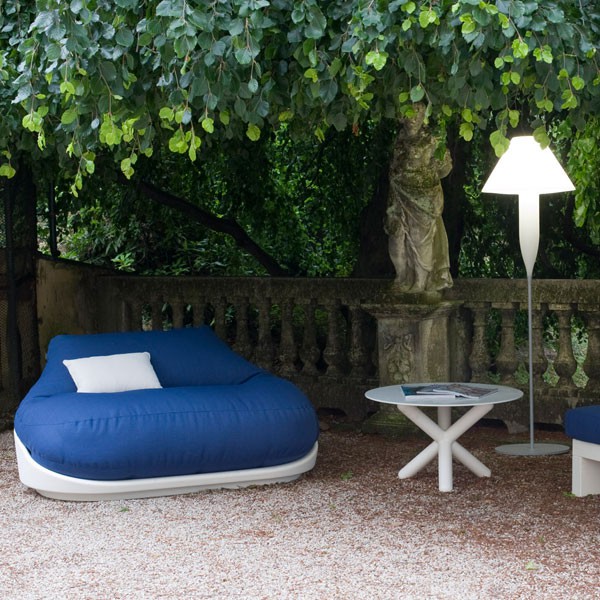 Side table with structure in (base density linear polyethylene) LLDPE obtained by rotomouldingUV protection. 100% recyclable, dyed in the mass
