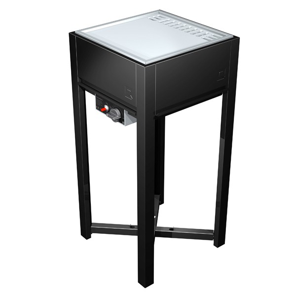 OneQ Module Elétrico gas is one of the modules from Managing to create its own outside kitchen. From a concept where it is possible to have cuisine outside tailored according to the needs and space, delicious dishes with family or friends are guaranteed with unmatched cooking quality. The stainless steel cooking grid allows a technique of cooking by contact which facilitates the linking of cooking: fish, seafood, meat and vegetables without never to mix flavors. This module griddle gas is to accompany other modules (OneQ Module gas Barbecue, OneQ Module cutting board, Managing Module charcoal Barbecue, OneQ Module sink and faucet and OneQ Module tray toice ) to form a versatile kitchen out of the ordinary. This module is equipped with a plancha stainless way tepan yaki. The power of the burner is 8kw (equivalent to the power of a barbecue 2 burners), which allows a very efficient cooking. OneQ Module Placha gas is available in stainless steel finish or lacquered steel black and equipped with an aluminum grease collector.