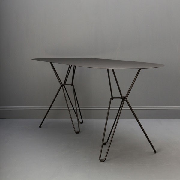 Table with oval metal tray, galvanised steel, polyester coating structure