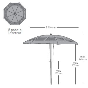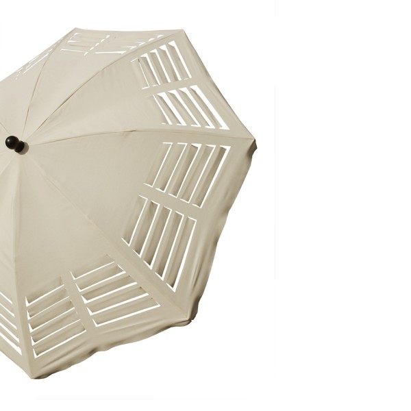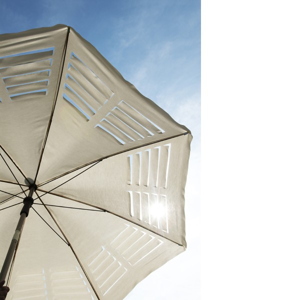 Like louvers, laser cutting lines defy the laws of tension of the fabric of the umbrella. All this creates a surprising plot between shadow and light. An umbrella trend that is suitable both for professional use and leisure use.