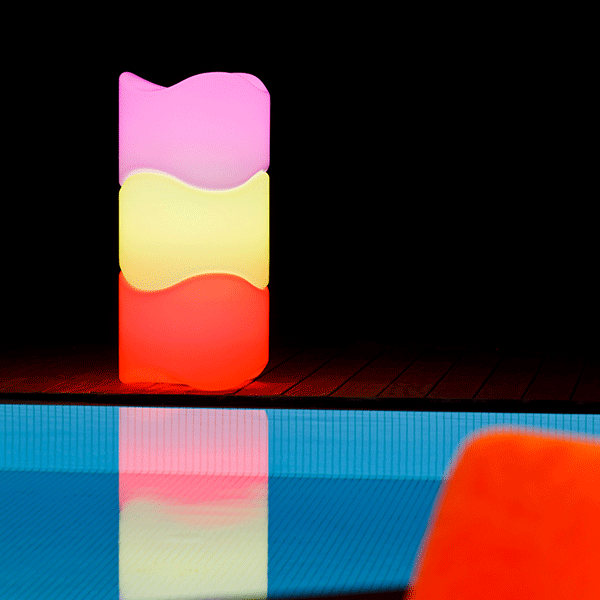 Pouf / lamp battery for outdoor wirelessPouf stackable to create a light column