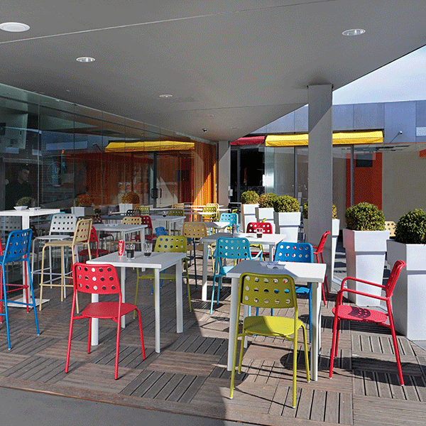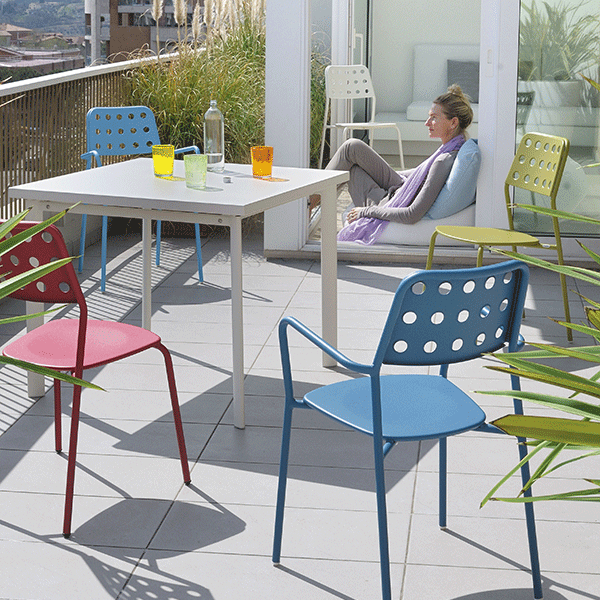 Available in 10 colours: grey cement, aluminium, iron, old, white off-white, black, Brown India, blue, green, orange and ScarletSet of 4 chairs Shot from Emu is one of 4 outside chairs ideal for both private and contract use. Their tubular structure, their seat steel and their back to openwork patterns guarantee extreme comfort. With their system of protection of metal "EMU COAT" these chairs are very resistant to weathering. These stackable and saving chairs fit into different contexts and to join the Emu as the Table Starcollection of different tables . Available in several colour trends, these vibrant chairs a touch of freshness to your exterior. You can find in the same collection Chair Shot and the Stool top Shot.