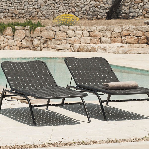 The Bain De Soleil Yard in Emu was designed by designer Stefan Diez. The collection Yard is a full range made of painted aluminium associated with elastic straps specifically designed for outdoors. These cross-straps give life to furniture and provide an unusual style stated comfort. Through a collection with refined lines, Yard combine quality materials. A vintage look, this Sun-bathing in different colours is ideal to enjoy the sun while creating a warm atmosphere.