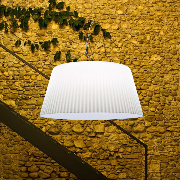 The Suspension Lampa Daria designed by Luisa Bocchietto for Serralunga is inspired by the traditional form of suspensions and declined in rigid plastic version polyethylene.
