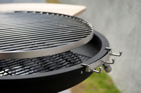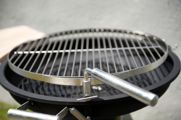 The cooking grate is adjustable in height for a mastery of cooking.